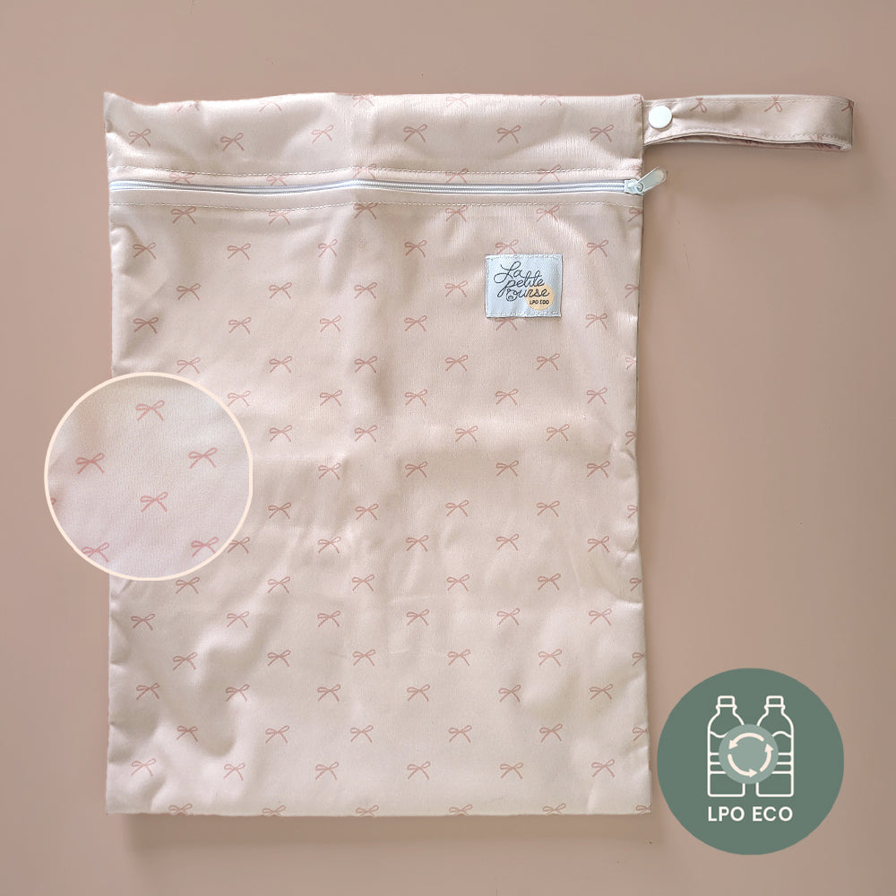 Durable bag made of waterproof recycled polyester to dispose of your soiled diapers when out.